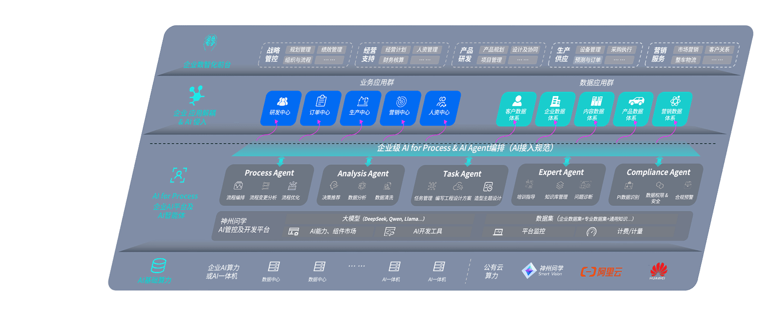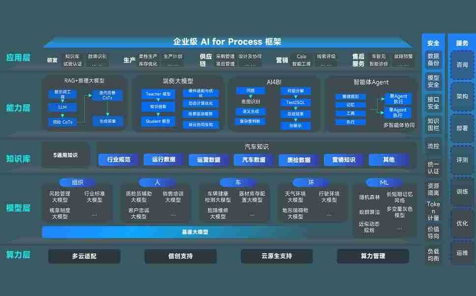 端到端的一站式AI工作空间深度融合了从企业战略规划到日常经营的全流程业务板块,,,定向解决车企内部领域多、、部门多、、、、链条长、、、场景碎片化等难题,,,,支持车企快速构建以AI为核心的生产力写作体系,,,实现任务执行与AI能力的无缝集成与交互